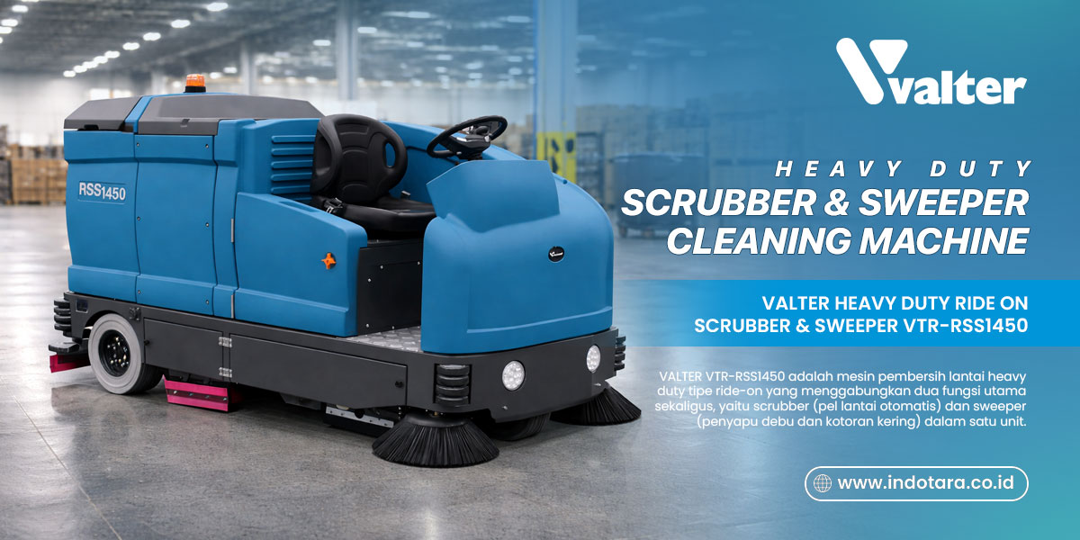 VALTER VTR-RSS1450 adalah mesin pembersih lantai heavy duty tipe ride-on yang menggabungkan dua fungsi utama sekaligus, yaitu scrubber (pel lantai otomatis) dan sweeper (penyapu debu dan kotoran kering) dalam satu unit. Mesin ini dirancang khusus untuk kebutuhan area luas dengan intensitas tinggi, seperti pabrik, gudang, bandara, mall, rumah sakit, pelabuhan, area parkir, hingga kawasan industri. Baca Selengkapnya...