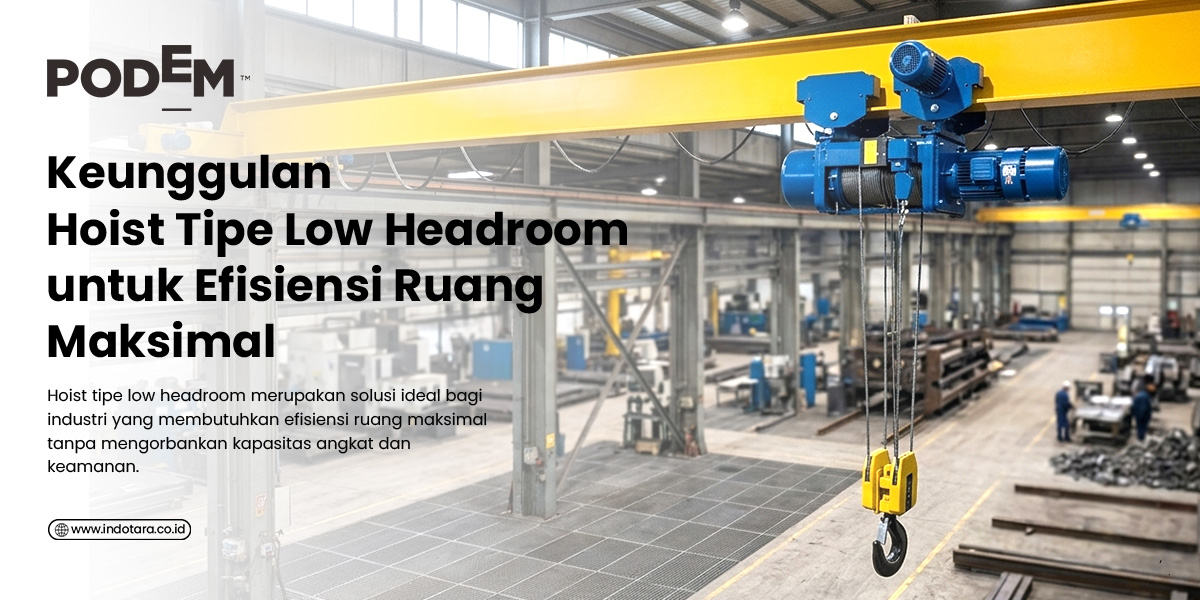 Hoist tipe low headroom merupakan solusi ideal bagi industri yang membutuhkan efisiensi ruang maksimal tanpa mengorbankan kapasitas angkat dan keamanan. Dengan desain kompak, distribusi beban stabil, serta fleksibilitas aplikasi, tipe ini menjadi pilihan strategis untuk optimalisasi sistem crane di berbagai sektor industri.
