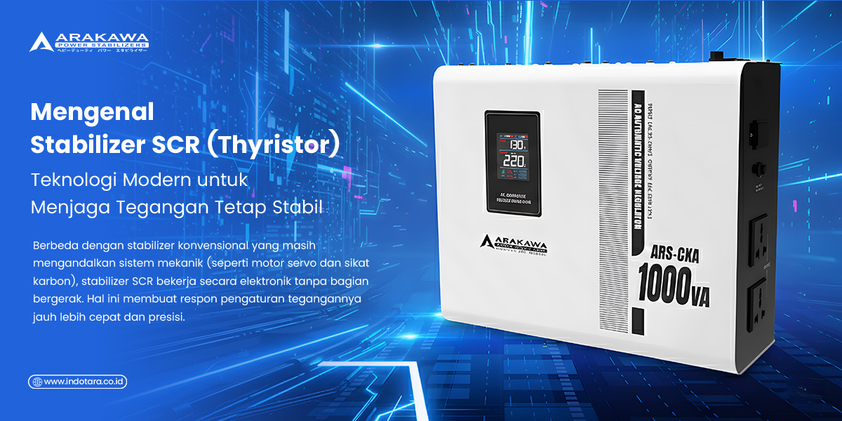 Dalam dunia kelistrikan, kestabilan tegangan merupakan faktor yang sangat penting, terutama bagi peralatan elektronik dan mesin industri yang sensitif terhadap perubahan tegangan. Fluktuasi tegangan, baik berupa penurunan (under voltage) maupun kenaikan (over voltage), dapat menyebabkan penurunan kinerja alat, kerusakan komponen, hingga berhentinya proses produksi. Untuk mengatasi permasalahan tersebut, digunakanlah stabilizer tegangan (voltage stabilizer). Salah satu teknologi stabilizer yang semakin banyak digunakan saat ini adalah stabilizer SCR (Silicon Controlled Rectifier) atau thyristor.50/F, Menara BCA Grand Indonesia