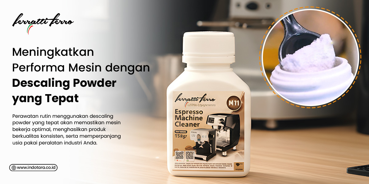 Salah satu solusi efektif untuk menjaga kinerja mesin tetap optimal adalah menggunakan Ferratti Ferro descaling powder M11. Produk ini dirancang khusus untuk kebutuhan pembersihan mesin industri dan komersial seperti espresso machine, boiler, serta hot water system.