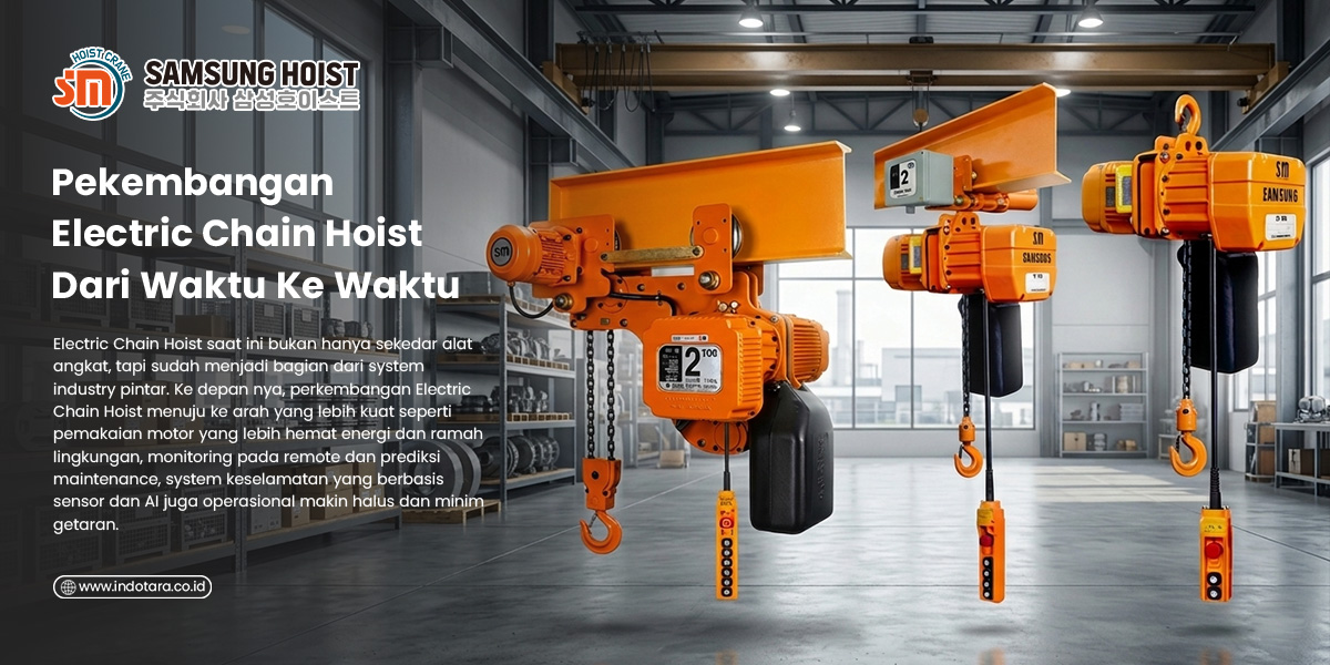 Electric Chain Hoist saat ini bukan hanya sekedar alat angkat, tapi sudah menjadi bagian dari system industry pintar. Ke depan nya, perkembangan Electric Chain Hoist menuju ke arah yang lebih kuat seperti pemakaian motor yang lebih hemat energi dan ramah lingkungan, monitoring pada remote dan prediksi maintenance, system keselamatan yang berbasis sensor dan AI juga operasional makin halus dan minim getaran.