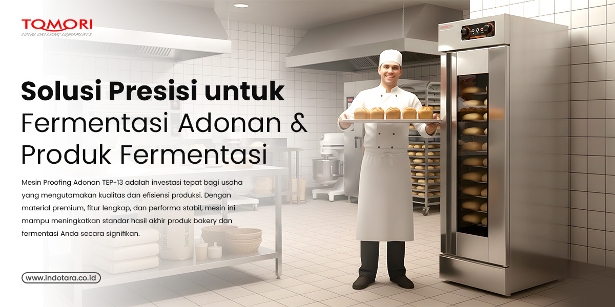 Mesin proofing adonan TEP-13 adalah pilihan ideal bagi bakery, dapur produksi, dan usaha makanan fermentasi yang membutuhkan kontrol suhu dan kelembapan yang stabil, akurat, dan konsisten. Dengan desain kokoh berbahan stainless steel food grade serta fitur modern, mesin ini mampu mendukung kualitas produksi secara profesional.