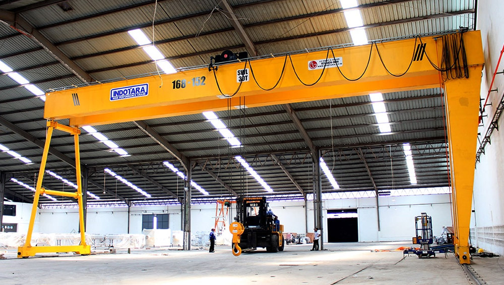 Type double girder atau girder ganda jauh lebih fleksibel dan memungkinkan gerakan pengait 3 dimensi. Dalam instalasi ini, hoist double girder dapat bergerak melintasi girder crane untuk menutupi luasnya ruang. Selain itu, rakitan girder crane dapat bergerak di sepanjang ruang yang mencakup area yang jauh lebih luas daripada monorail. crane jenis ini memiliki manfaat tambahan karena hoist type double girder dipasang di atas balok penyangga samping atau dinaikkan untuk dipasang di antaranya. Hal ini memungkinkan ketinggian kait yang diperpanjang dan fleksibilitas yang lebih baik.