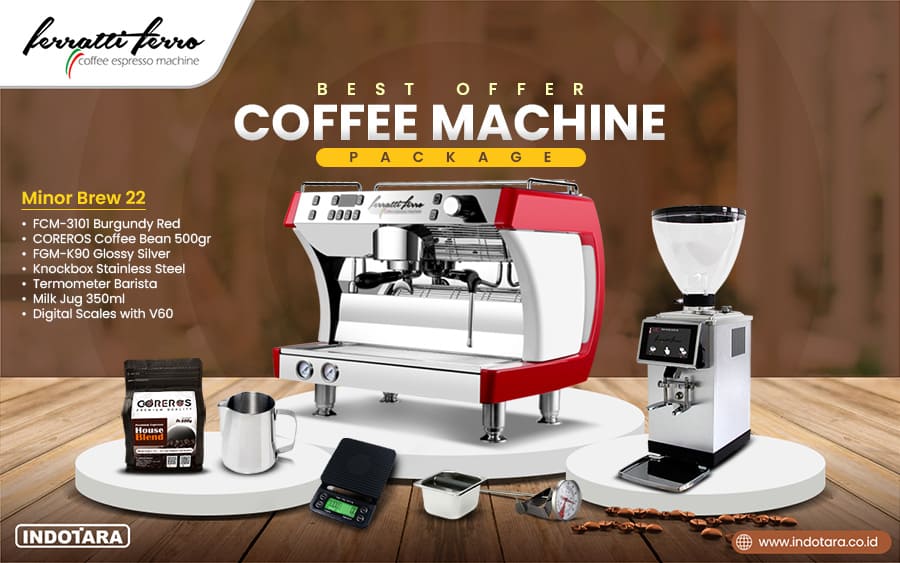 JUAL PAKET MESIN KOPI, COFFEE GRINDER, PENGGILING KOPI, MESIN GILING KOPI | Indotara menjual Paket mesin kopi berkualitas terbaik, sangat cocok untuk anda yang baru mau memulai usaha bisnis kopi. paket mesin kopi ferratti ferro sangat praktis dan cocok untuk dijadikan penunjang bisnis minuman kopi anda seperti cafe, restoran adan hotel, selain perawatan yang mudah, PT. Indotara persada sebagai distributor tunggal mesin kopi ini, memberikan garansi produk, jaminan after sales dengan ketersedian spare parts yang lengkap dan Tekhnisi yang handal.